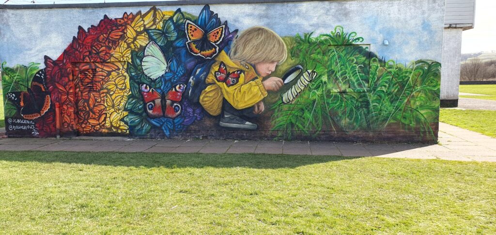 The mural has been painted on the wall facing onto the play area. Go have a look.